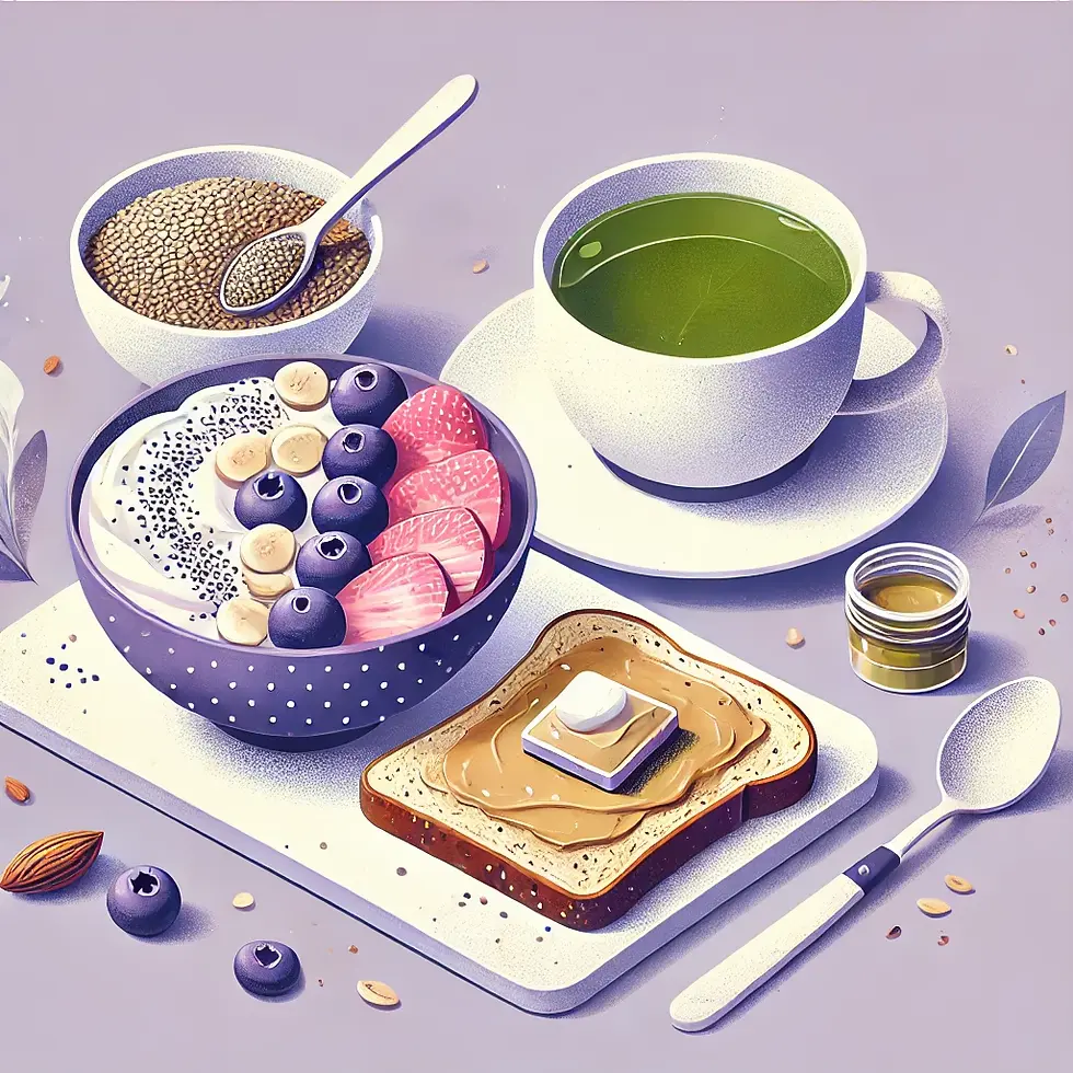 • A side of whole grain toastwith almond butter for added protein and healthy fats to keep you satisfied until lunch.